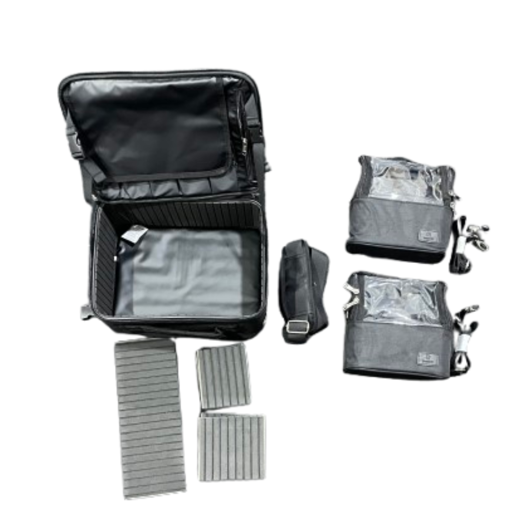 Trae dos brocheros con banda posterior para sujetar a cualquier maletin o maleta que cuente con banda delgada. Los brocheros se adaptan al maletin para que formen una sola pieza o también puedas llevarlos de forma independiente. Cada brochero tiene una capacidad aprox de 60-80 brochas entre delgadas y pequeñas. Cada uno cuando cuenta con una correa para que puedas llevarlo tipo morral o un asa para que lo lleves en la mano.